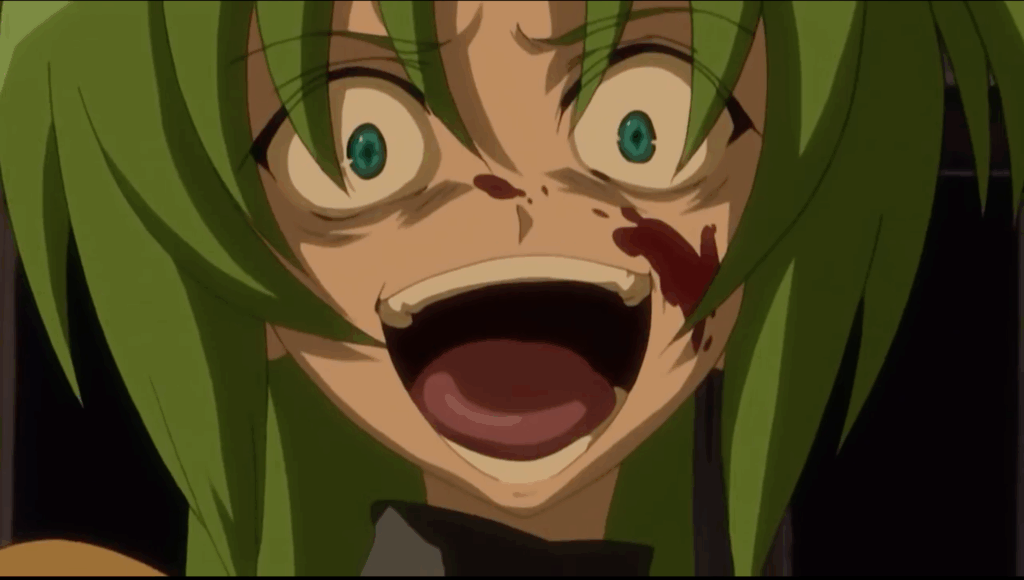 Rena Ryuuguu (Higurashi no Naku Koro ni): Em seus momentos de paranoia, sua obsessรฃo em proteger seus amigos a leva a atos de violรชncia extrema, impulsionada por sua instabilidade mental.