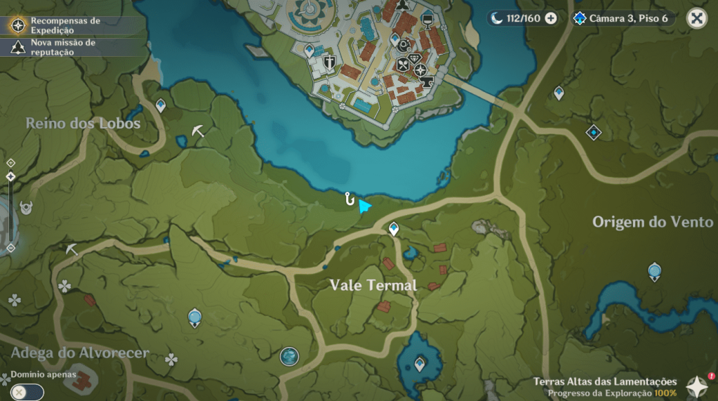 Neste Local próximo à cidade de Mondstadt você irá encontrar os dois tipos de Baiacu chamados Fugu que podem ser capturados utilizando isca de Mosca Falsa.