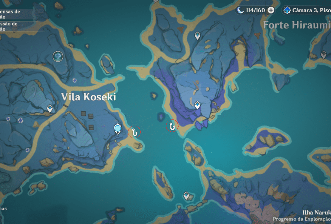 Na Ilha Seirai, próximo a Estátua dos Sete, você irá encontrar dois ótimos locais de pesca para farmar os dois tipos de Koi e o Baiacu.